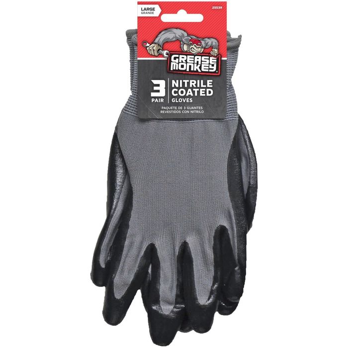 Grease shop monkey gloves, Grease Monkey Nitrile Dipped Large Gloves 3 Pack shop