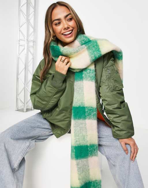 River Island bold tartan check scarf in green ASOS