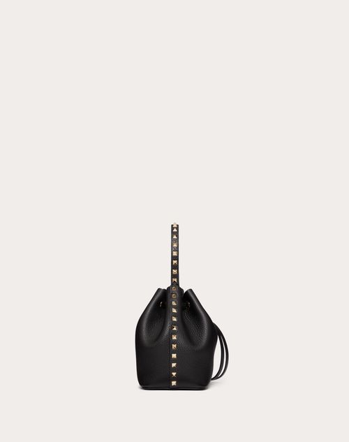 Rockstud Grainy Calfskin Bucket Bag for Woman in Black Valentino US