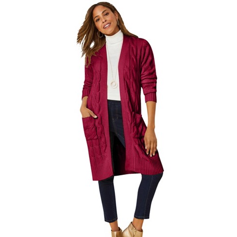 Jessica London Women s Plus Size Cable Duster Sweater 12 Rich