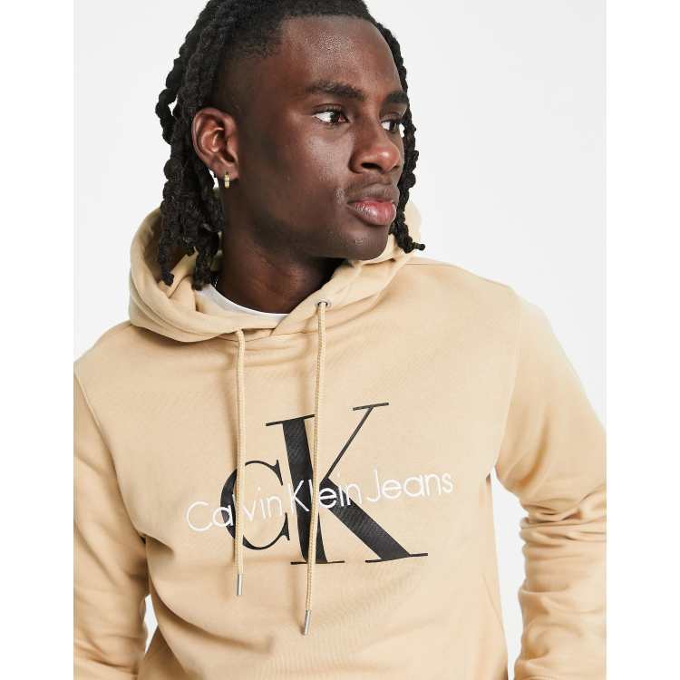 Calvin Klein Jeans monogram logo hoodie in tan ASOS