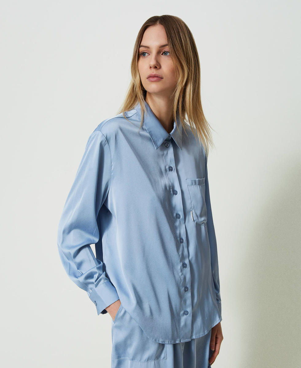 Camicia in raso con taschino Donna Azzurro TWINSET Milano