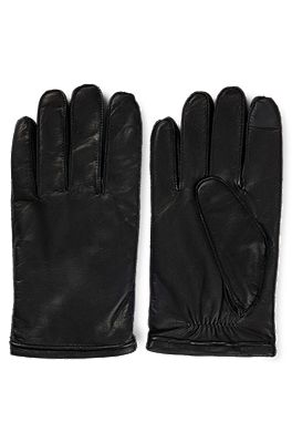 Hugo boss black leather shop gloves, Hugo Boss leather gloves in black shop