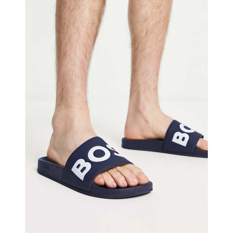 Hugo boss shop sliders asos, BOSS Orange Aryeh logo sliders in black and gold shop