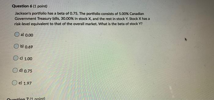 Solved Question 6 1 point Jackson s portfolio has a beta Chegg