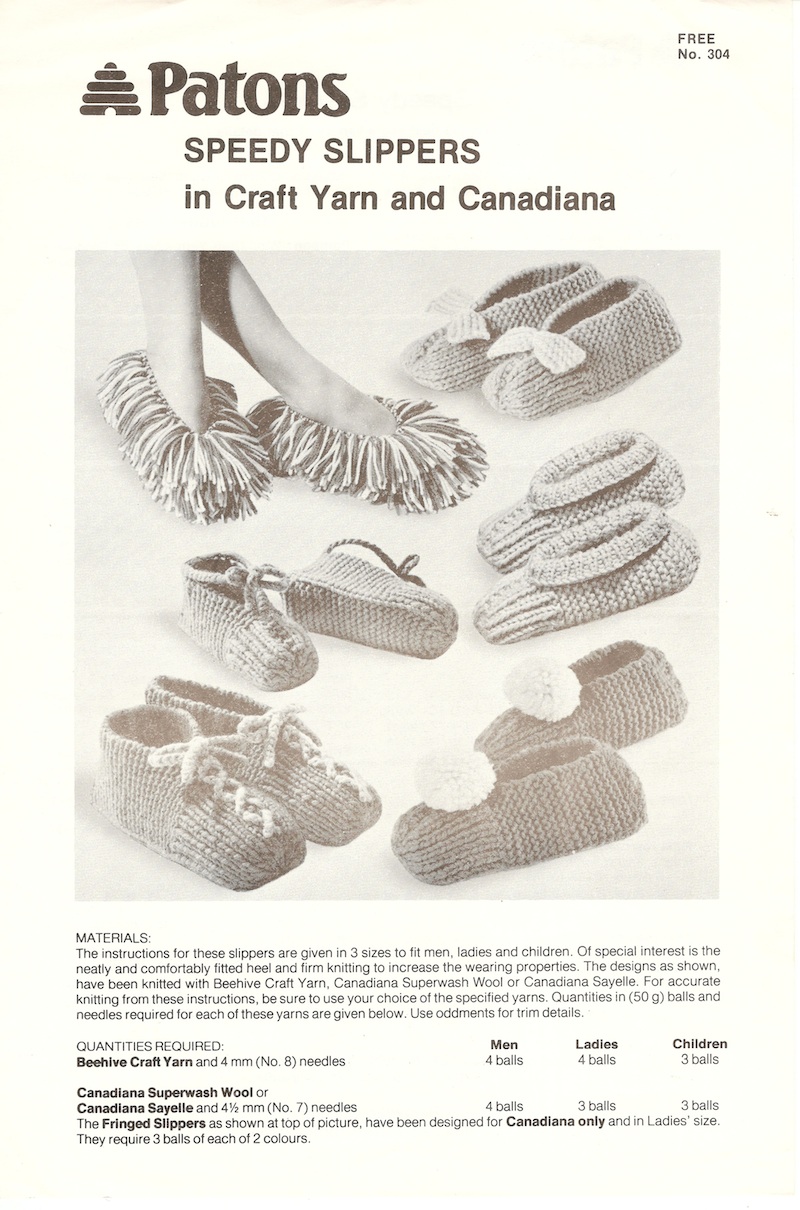 Patons No. 304 Speedy Slippers in Craft Yarn and Canadiana
