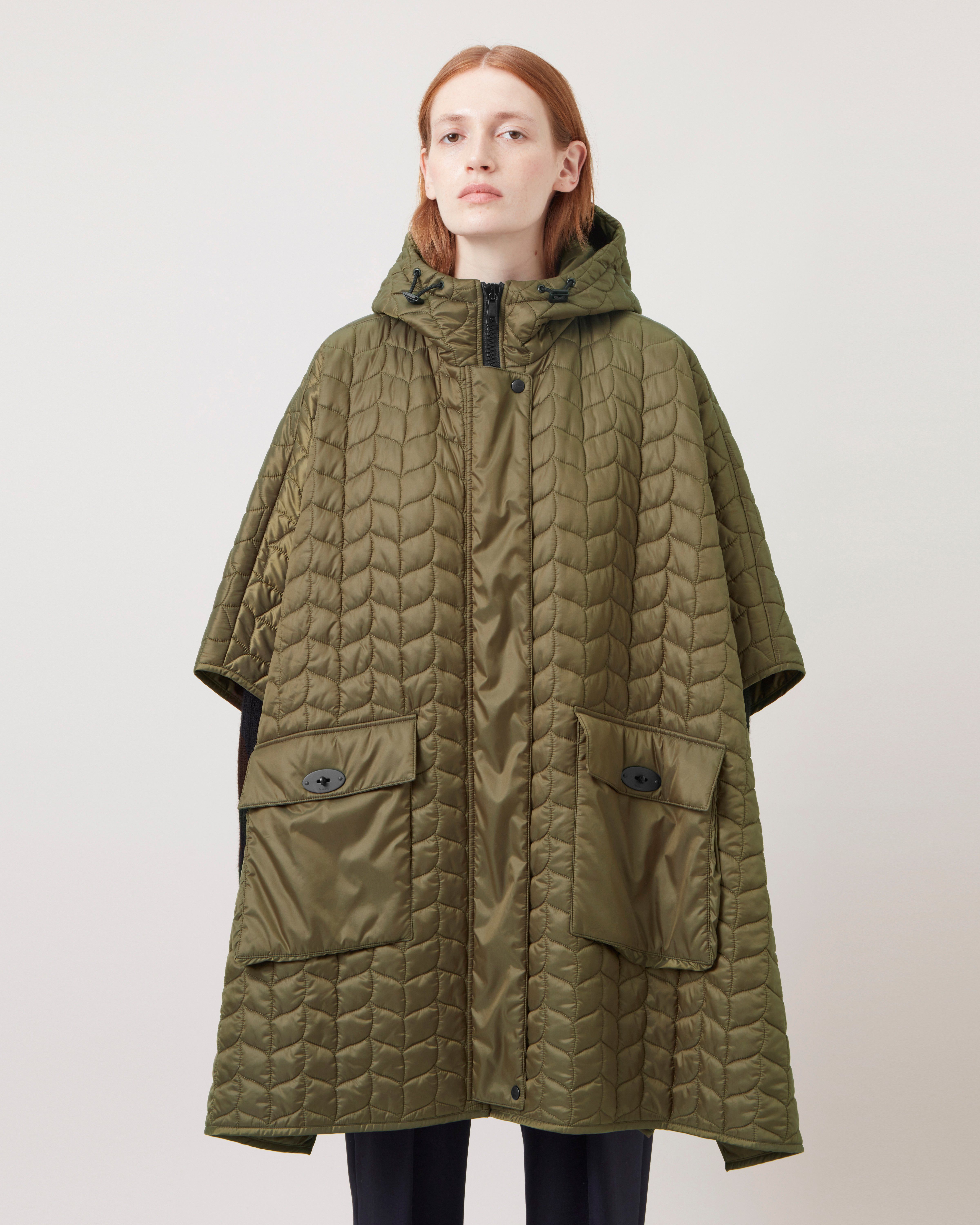Cape shop puffer jacket, Hooded quilted jacket in relaxed cape style made from recycled shop