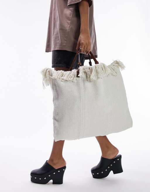 Jordan shop di tela, Topshop Jordan Borsa in tela crema con frange shop