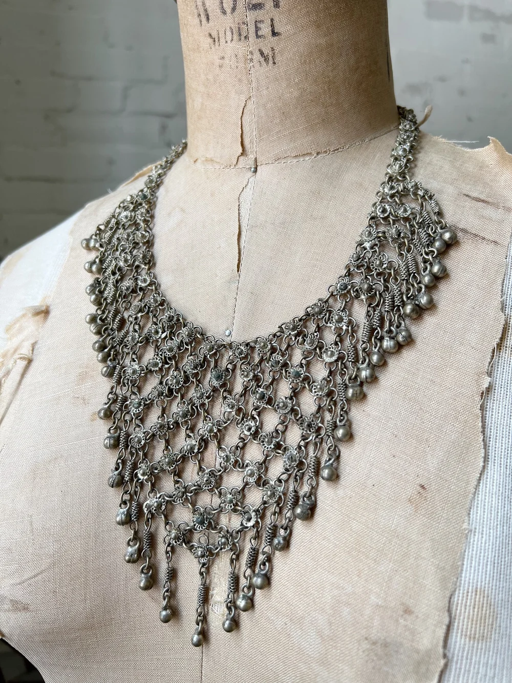 Chain shop bib necklace, Silver Large Egyptian Coin Full Bib Necklace at Bellydance shop