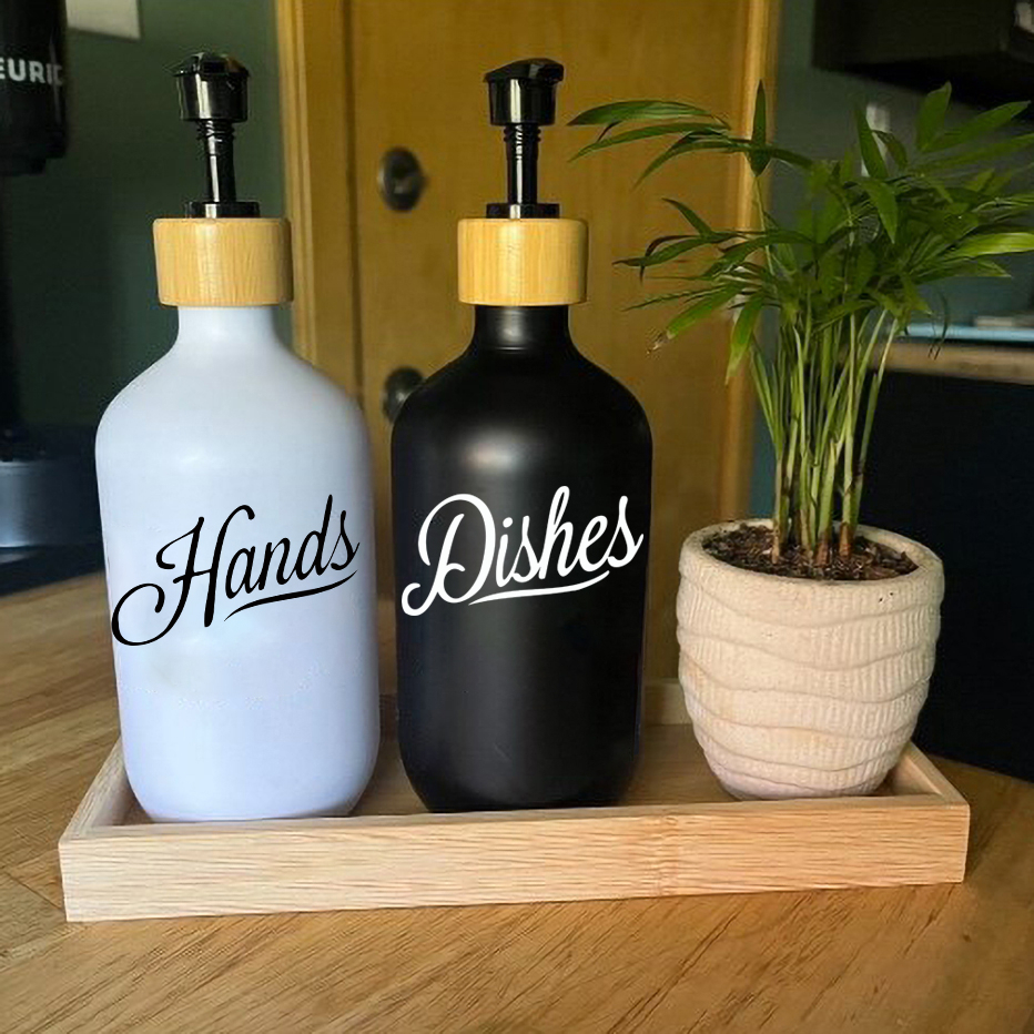 Kitchen Soap Dispenser Bottles With Bamboo Tray for Hands