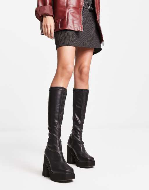 Heartbreak Kniehoge sock boots met dikke plateauzool in zwart ASOS