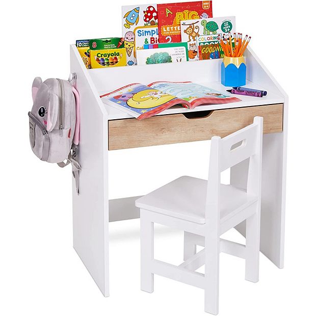 Lil Jumbl Toddler Wooden Kids Desk and Chair Set With Writing Table