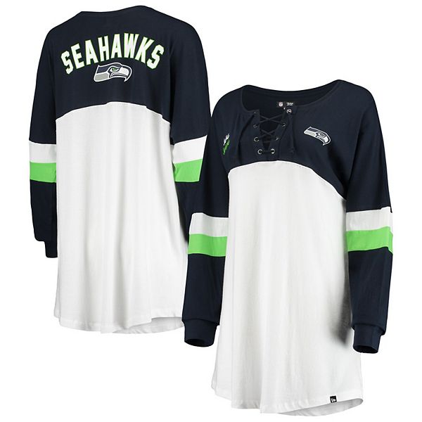 Kohls shop seahawks jersey, Women s New Era White College Navy Seattle Seahawks Athletic Varsity Lace Up V Neck Long Sleeve T Shirt shop