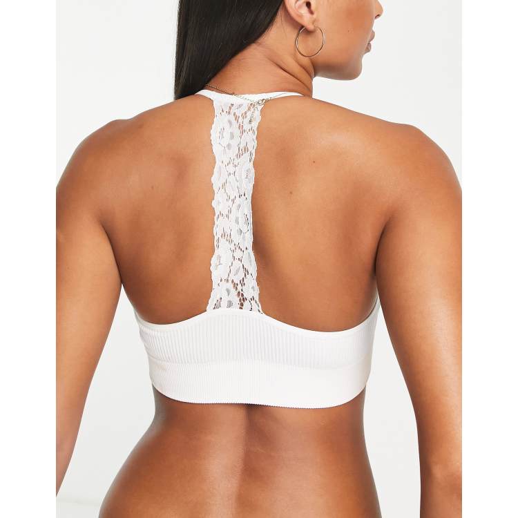 Lace back bra for open back shop shirts, New Look seamless lace back crop bra top in white ASOS shop