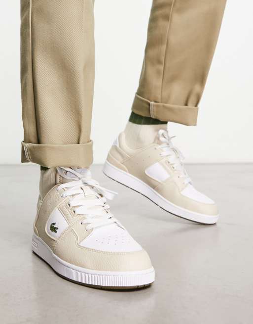 Lacoste Court Cage Colour Block Trainers In Beige White