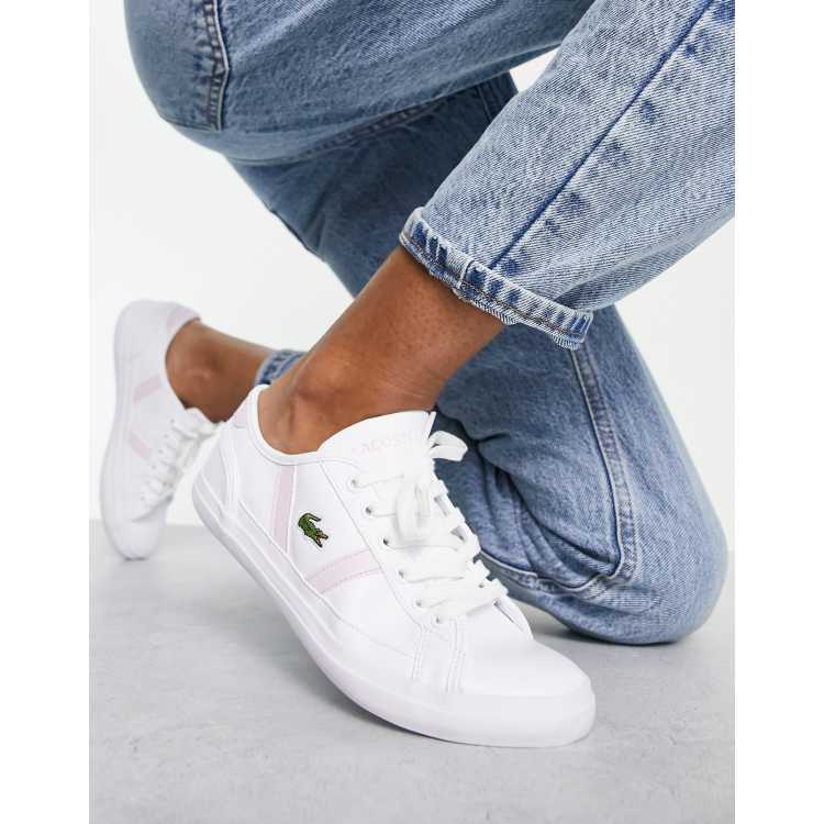 Lacoste Sideline Sneakers met veters en roze detail in wit leer